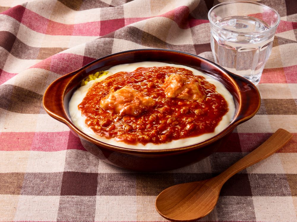 濃厚なミートソースとたっぷりのホワイトソースが特長です。調理がしやすい形状になって新登場です。