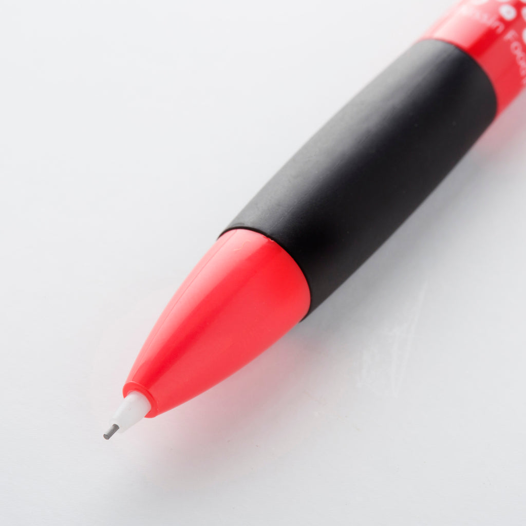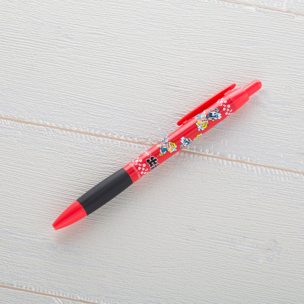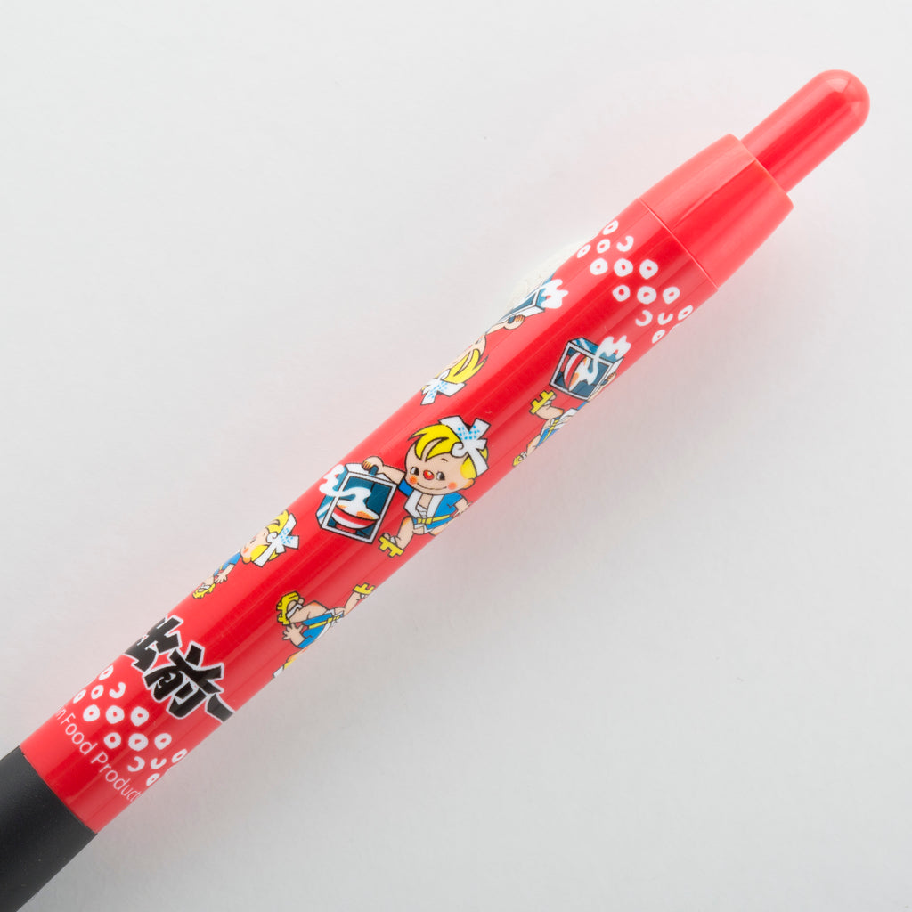「出前坊や」のかわいいイラストが描かれたシャープペン。ラバーグリップ付きで握りやすく滑りにくい仕様です。