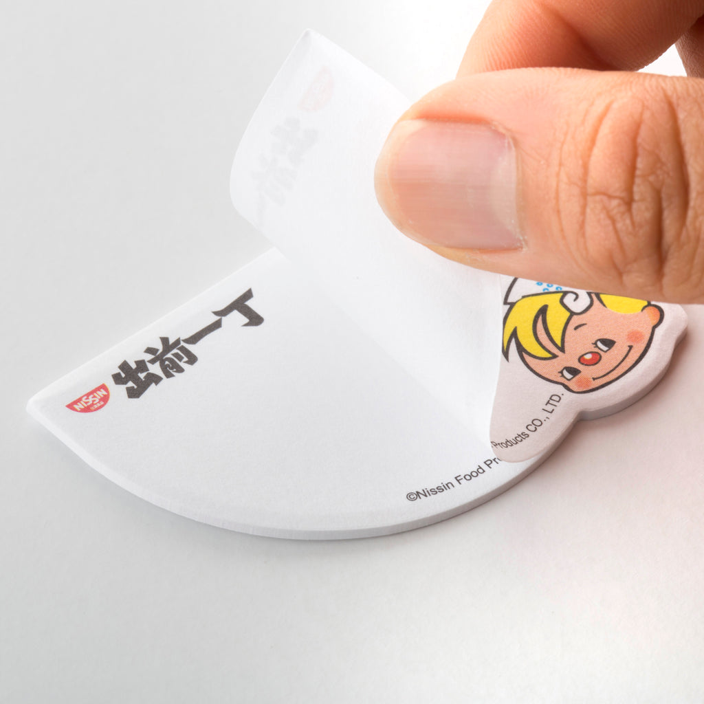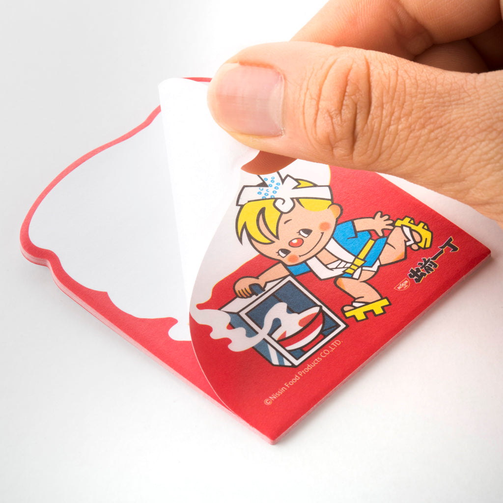 かわいい「出前坊や」のイラストが描かれた、2種類のデザインの付箋メモが入っています。
