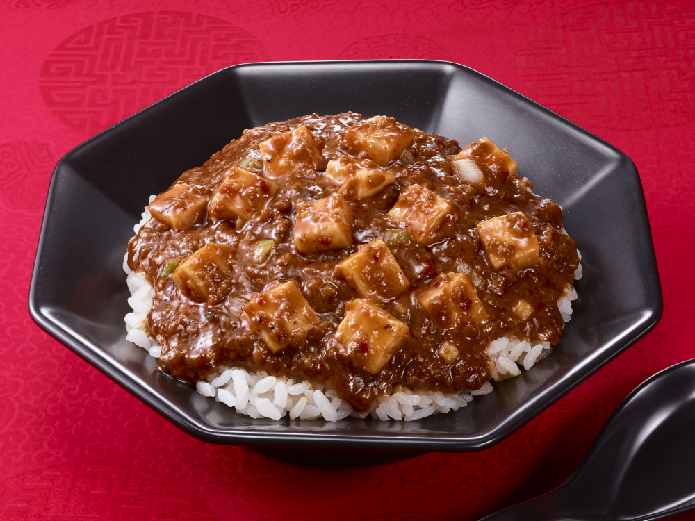 なめらかで口当たりのよい豆腐と豚挽肉の旨みたっぷりの麻婆あんを、ふっくらとした炊き上げたごはんにのせました。豆板醤のコク、花椒の香り、辣油の辛さの三拍子をお楽しみください。シャキシャキ食感の白ネギも程よいアクセントです。