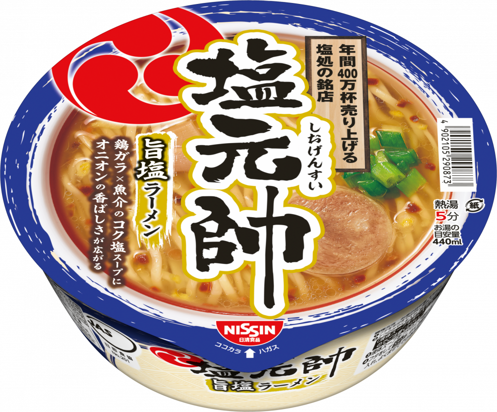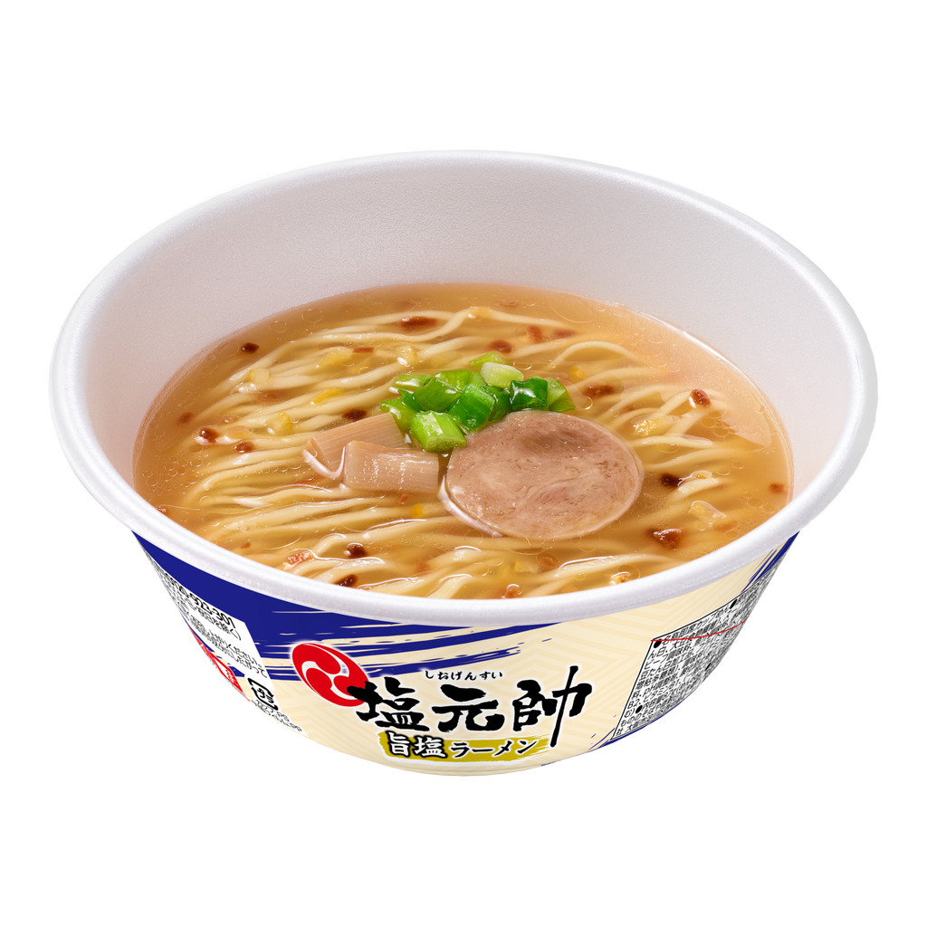 鶏ガラと魚介の旨みをベースにオニオンの香ばしい風味を加えた "コク塩スープ"。麺は、つるみとコシのあるノンフライストレート麺。具材は、ローストオニオン、チャーシュー、メンマ、ネギ、ゆず。人気塩ラーメン店「塩元帥」監修。
