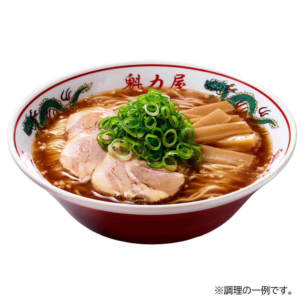 熟成感のある "たまり醤油" を使用した醤油だれをベースに、鶏ガラのコクと背脂の旨みをきかせたスープは、歯切れの良い中細ウェーブ麺と相性抜群です。京都北白川の銘店「ラーメン魁力屋」監修。
