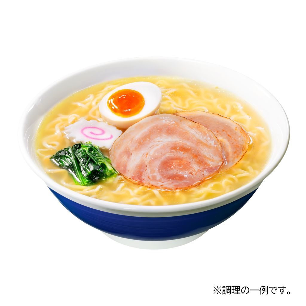 北海道産ホタテだしを増量してリニューアル!鶏ベースの澄んだスープに、より風味豊かになったホタテのコクが溶け出して、もっとおいしい!こだわりスープの函館しおラーメン。