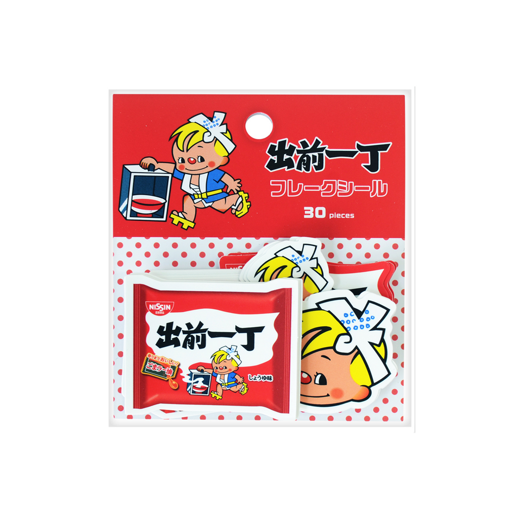 おなじみの出前一丁柄のフレークシールです!日記手帳のデコレーションはもちろん、スマホケースに挟んでも楽しめます。