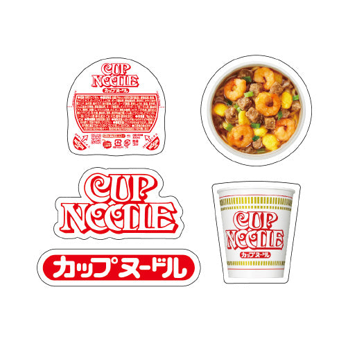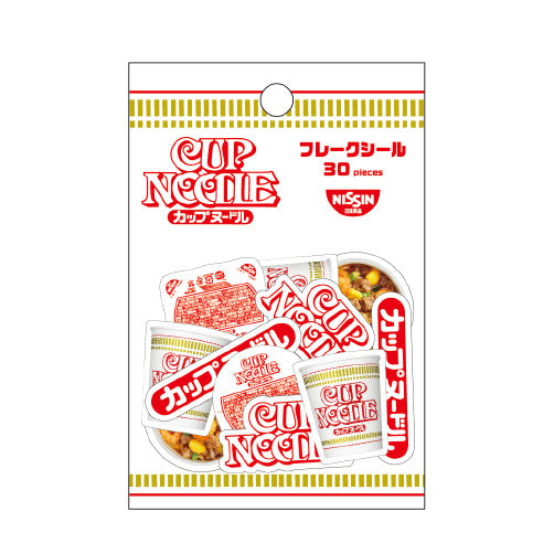 カップヌードルのフレークシールです。 おなじみのロゴからお腹が空いちゃいそうな柄まで。携帯カバーに挟んだり、お好きな柄を交換したりと楽しみ方は色々!