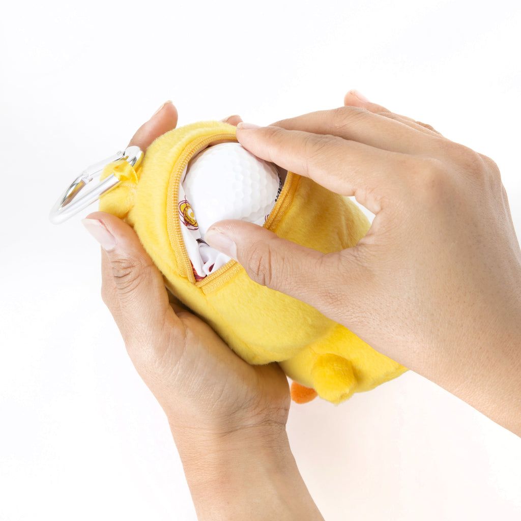 ゴルフ場で話題になること間違いなし!ひよこちゃんがとっても可愛いゴルフ用ボールポーチです。金具付きでゴルフボールが2個入ります。ゴルフコンペの景品やプレゼントにもおすすめ。お揃いのひよこちゃんヘッドカバーはこちら。その他のゴルフグッズはこちら。