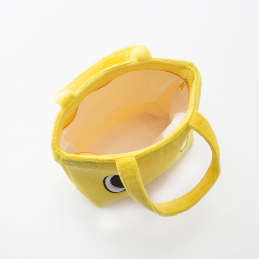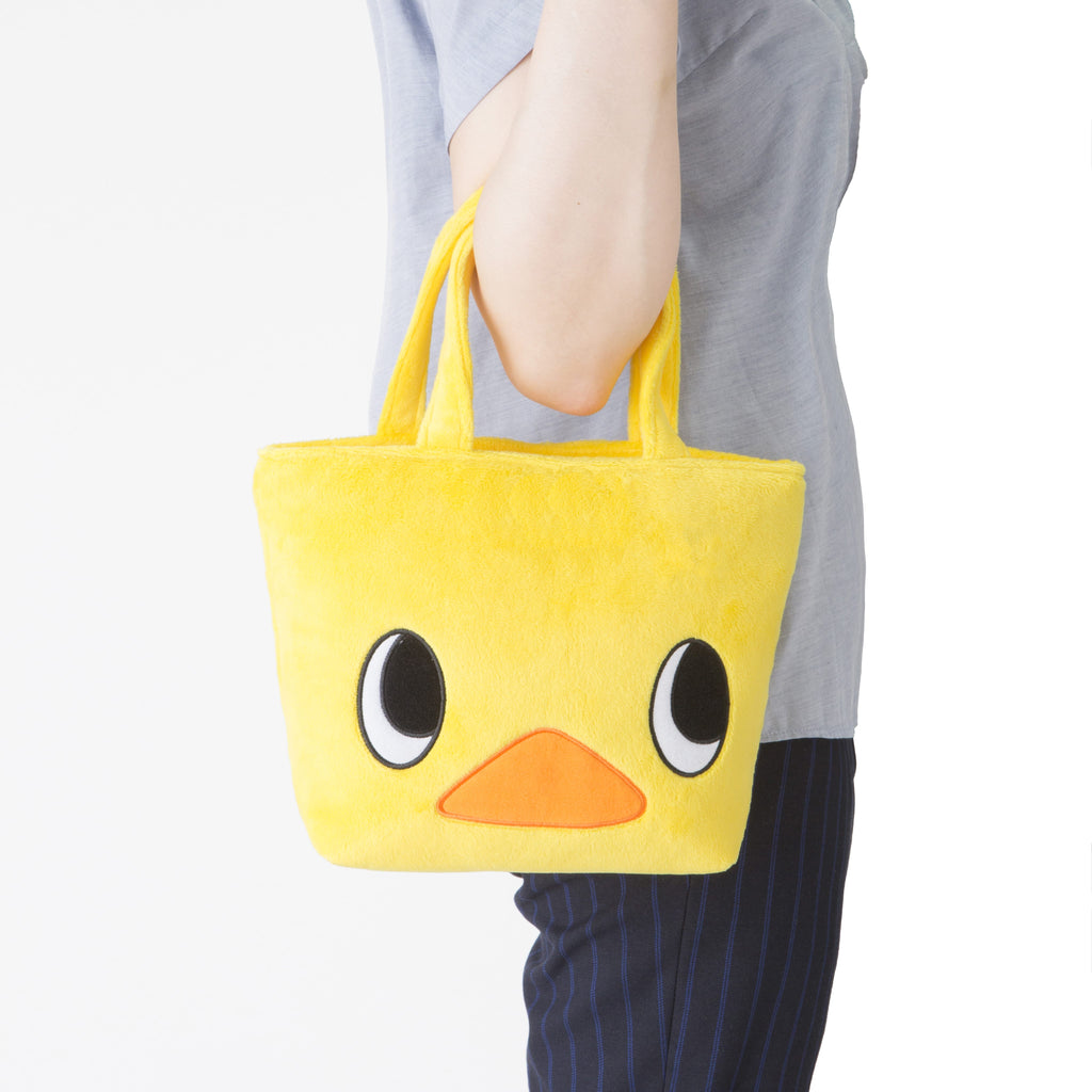 ふわふわ素材で手触りも抜群!ちょっとしたおでかけやお散歩、またはお弁当を入れたりするのにもぴったりなバッグです。全面にデザインされたひよこちゃんの顔がとってもキュートです。