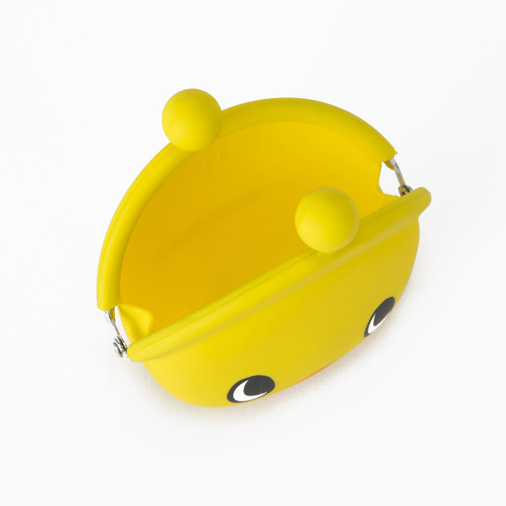 ひよこちゃんの顔を全面にデザインした、手のひらサイズのシリコン製小物入れです。お財布としても使えます。お揃いのポシェットやさらに小さいサイズの小物入れもあります!