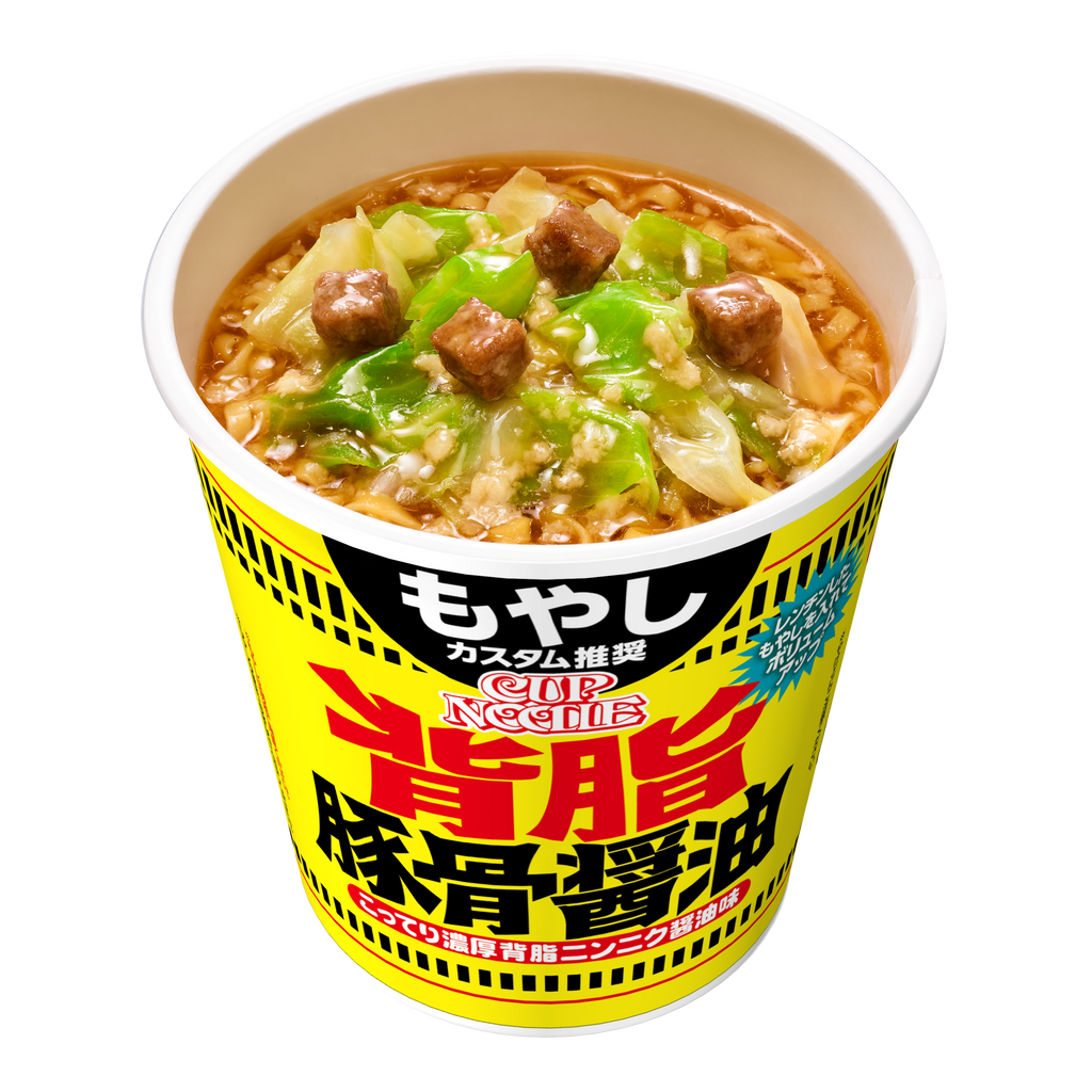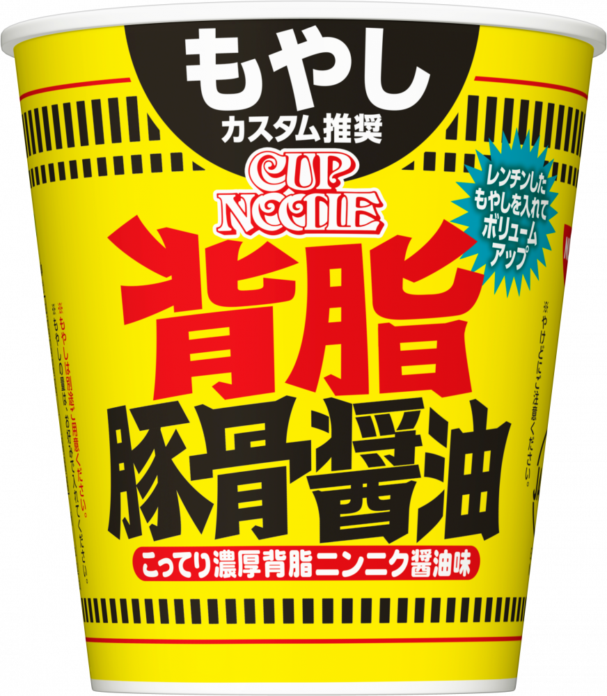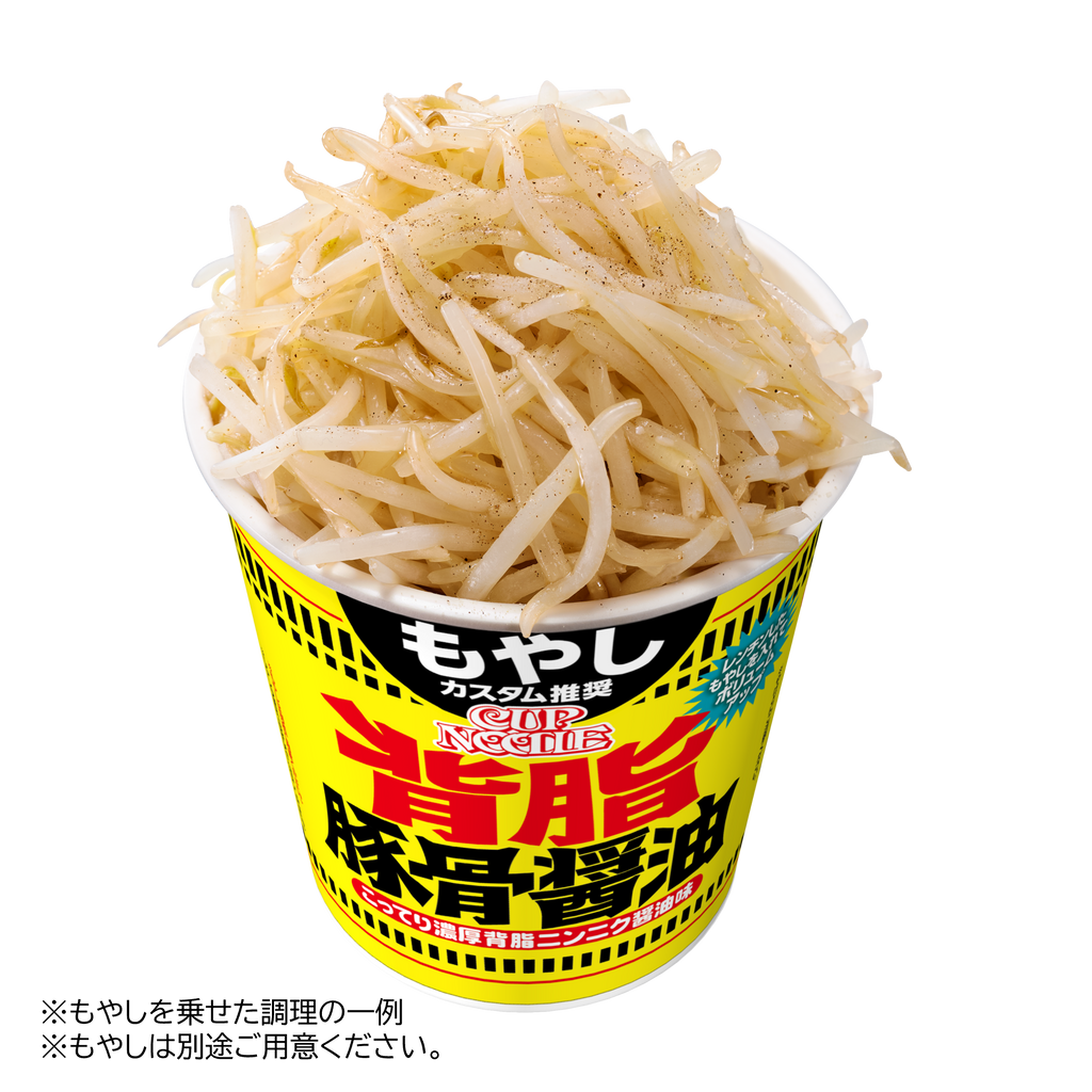 醤油をベースに豚骨のうまみをきかせた濃厚な味わいのスープ。別添の「特製豚オイル」を加えると、豚とニンニクの香りが際立ち、パンチのある味わいに。レンチンしたもやしを入れて、ボリューム満点の一杯が楽しめます。