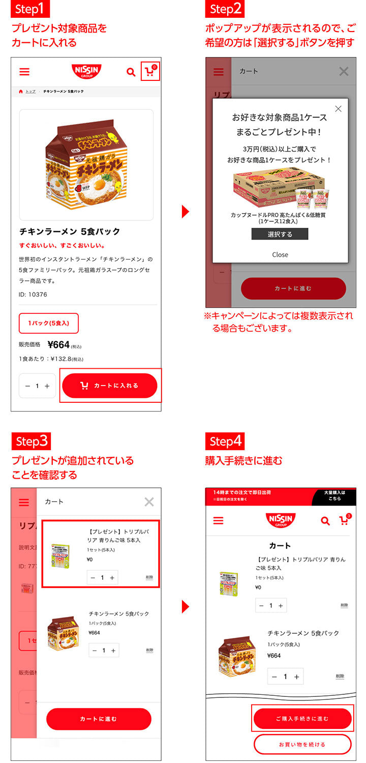 ※必ず景品がカートに追加されていることをご確認の上、購入手続きにお進みください。