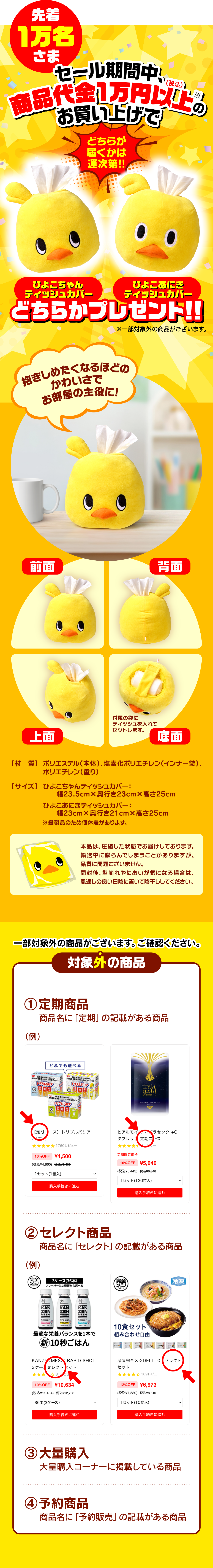 - 対象商品を10,000円(税込)以上追加いただくと、ポップアップでプレゼント商品が表示されます。