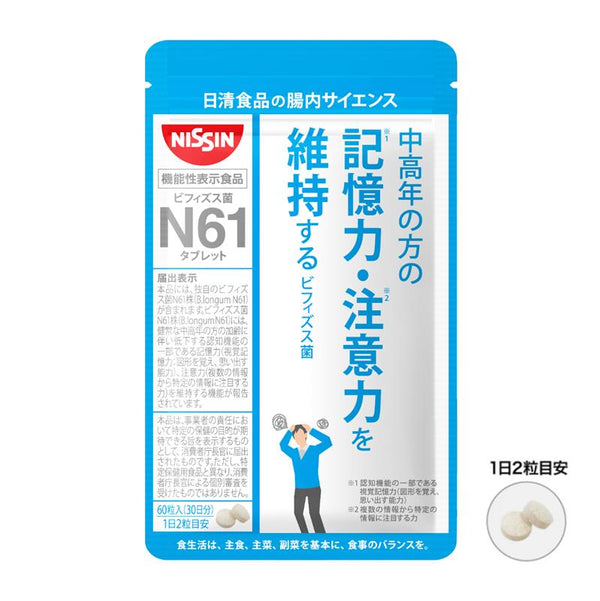 日清食品独自のビフィズス菌N61株を配合した、中高年の方の記憶力※1と注意力※2の維持をサポートする機能性表示食品です。