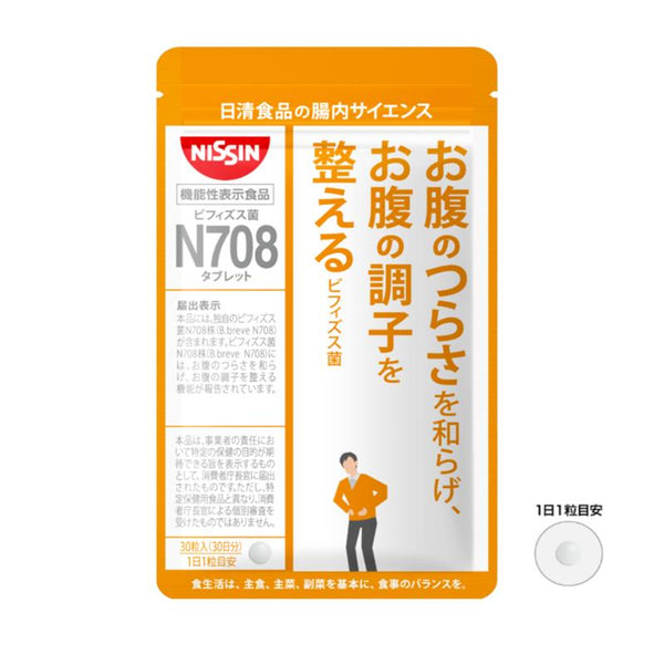 日清食品独自のビフィズス菌N708株を配合した、お腹のつらさを和らげ、お腹の調子を整える機能性表示食品です。