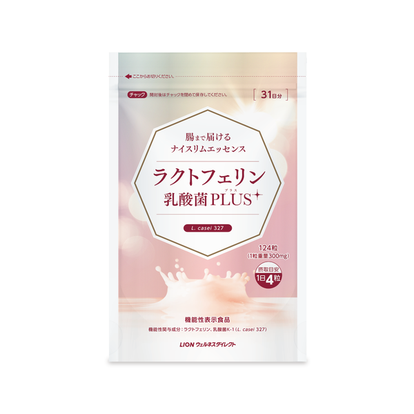 【届出表示】本品にはラクトフェリン、乳酸菌K-1(L. casei 327)が含まれます。ラクトフェリンは、肥満気味な方のおなかの脂肪(内臓脂肪)を減らすのを助け、高めのBMIの改善に役立つことが報告されています。乳酸菌K-1(L. casei 327)は、おなかの調子を整え、お通じの改善を助けることが報告されています。また、乳酸菌K-1(L. casei 327)は、肌の潤いを逃がしにくくし、肌を乾燥から守る機能(バリア機能)を維持することが報告されています。【届出番号】F780