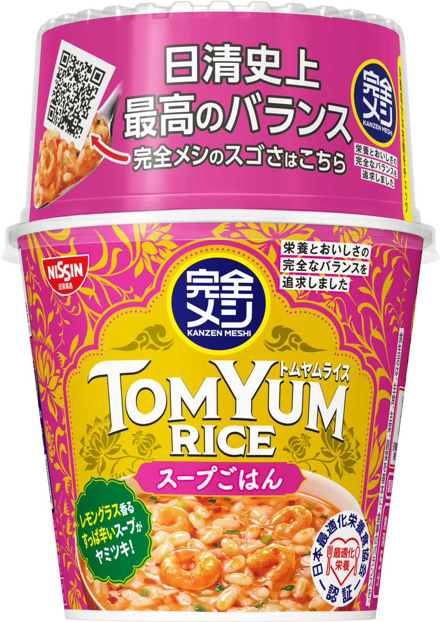 33種類*1の栄養素とおいしさの完全なバランスを追求した「完全メシ」!  日清食品の最新フードテクノロジーを駆使することで、栄養素独特の苦味やエグみを抑え、普段の食事と変わらないおいしさを追求しました。