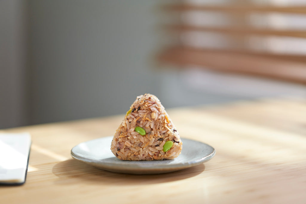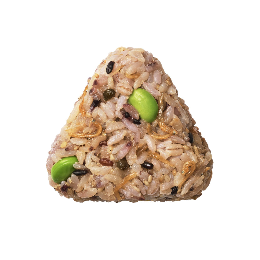 ちりめん山椒、ごま、枝豆、大麦や黒米などの雑穀を混ぜ込んだおにぎり。山椒のアクセントが◎。